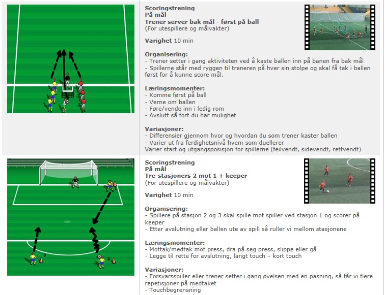 Scoringstrening er i sin natur et angrepstema. Vi bør likevel i tillegg fokusere på det løpende treningstemaet ‘Førsteforsvarer (1F) og forsvarsspill’ der det er naturlig. Hovedfokus i scoringstreninga skal imidlertid være angrep og scoring.