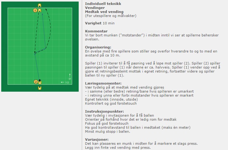 Spilleren skal kunne gjøre seg spillbar og invitere til pasning på riktig tidspunkt, kunne ta med seg ballen i gunstig retning med den første berøringen og legge ballen til rette for neste trekk. Læringsmomenter: