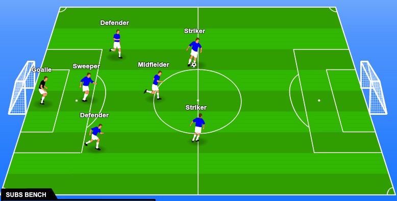 De viktigste formasjonene i 7er fotballen er: