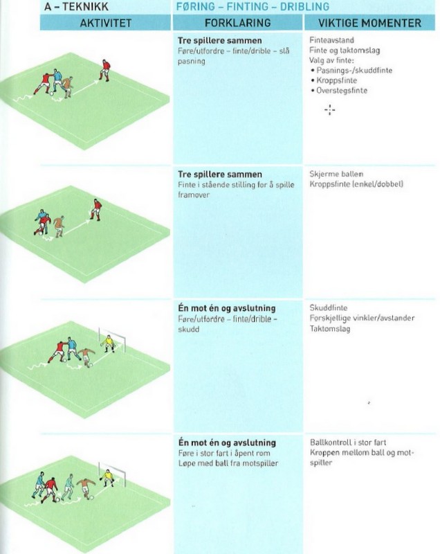 Tekniske øvelser på føring og finting ved dribling: