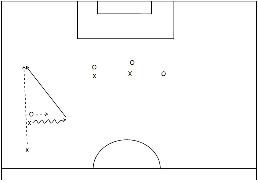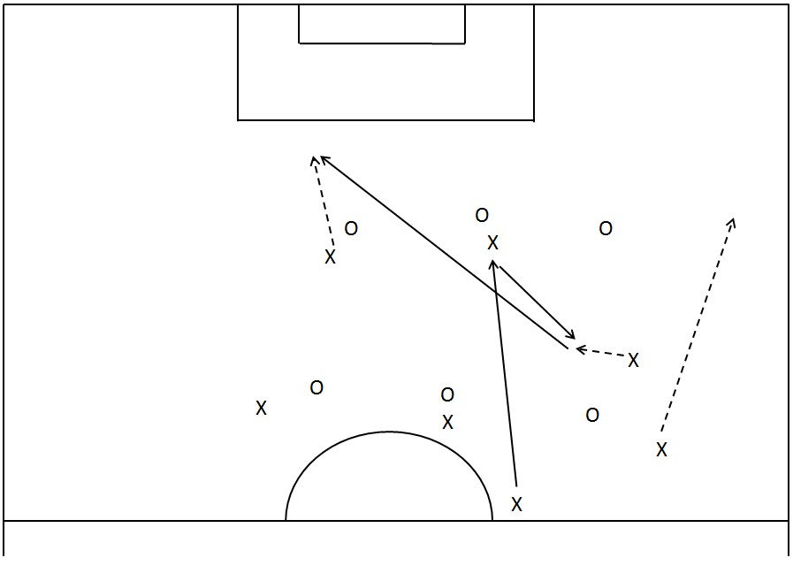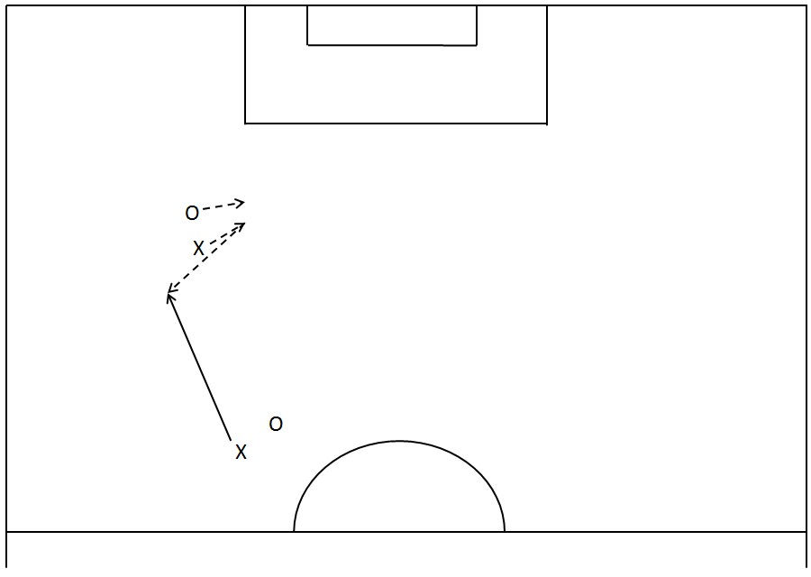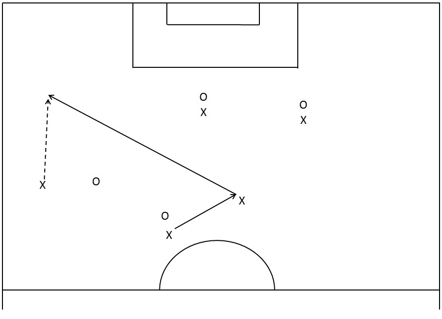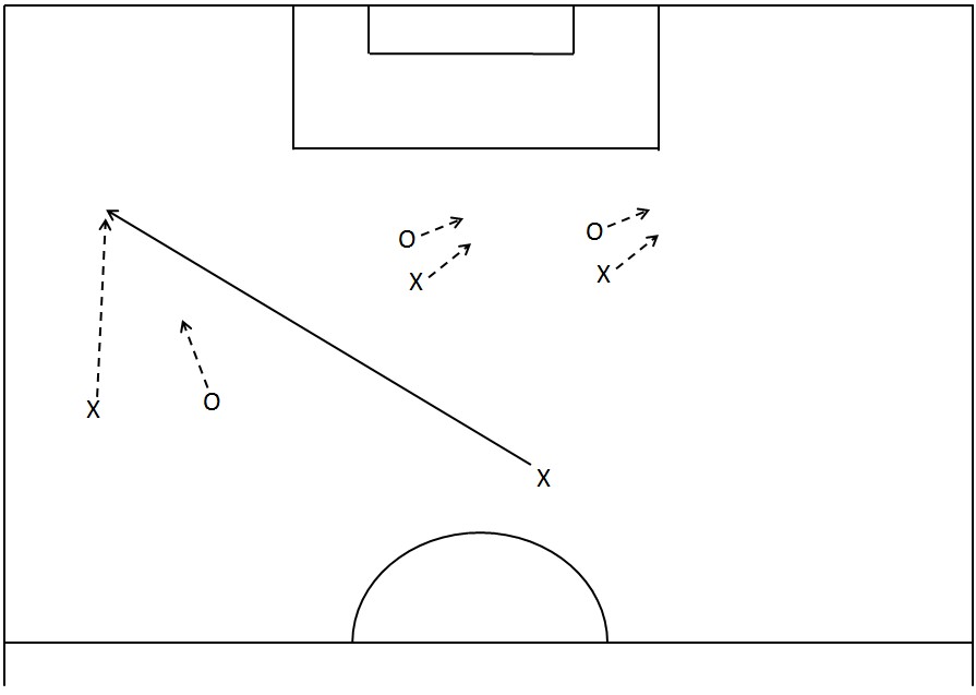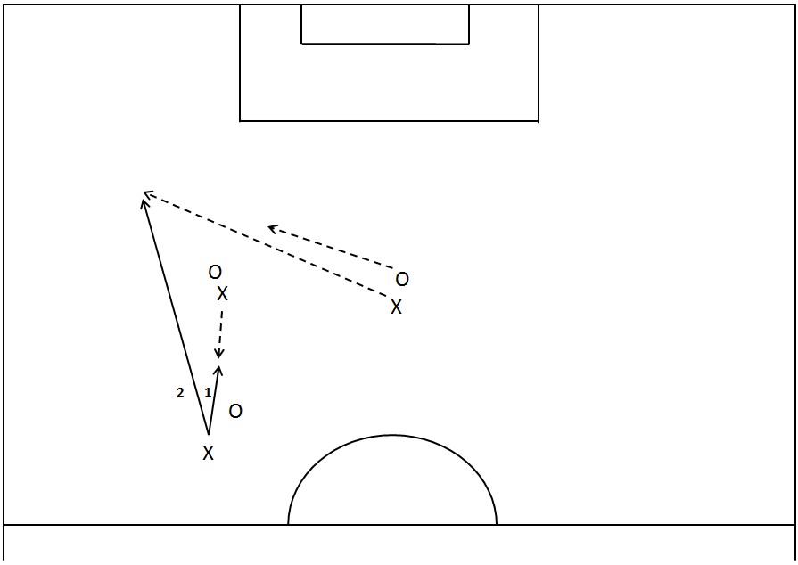 Et spesielt godt valg er det når støttespilleren vender spillet med en vinklet pasning (crossball) til motsatt side, der muligheten for å avansere er større.