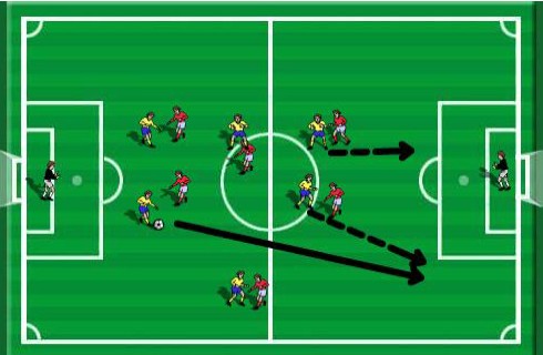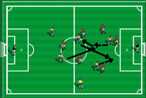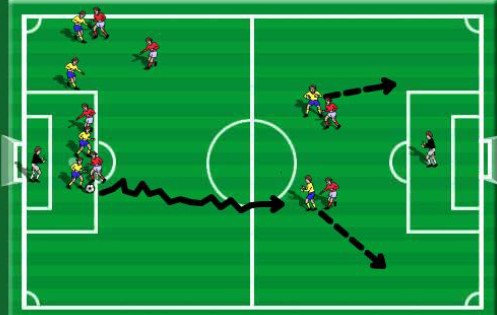 - Bruk keeper (han eller hun er den syvende utespilleren i angrep) og/eller spiller bak ballfører (støtte) dersom det er trangt. For deretter å slå pasning til en medspiller et sted på banen der det er større rom og han/hun har bedre tid.