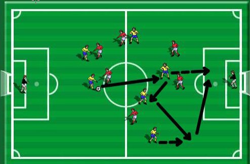 Bruddet går og ved bevegelse og pasning opp – tilbake har vi skapt en overtallssituasjon nær motstanderens mål.