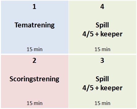Med en slik firedeling har man fleksibilitet til å variere både øvelsesgruppene og hvem som spiller mot hverandre.